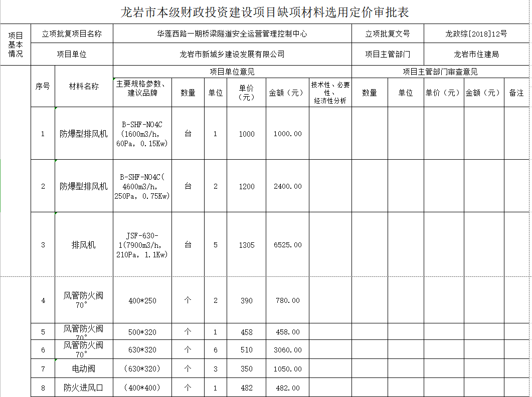 Time:2020-03-03龙岩市本级财政出资建筑项目缺项原料选用定价审批表