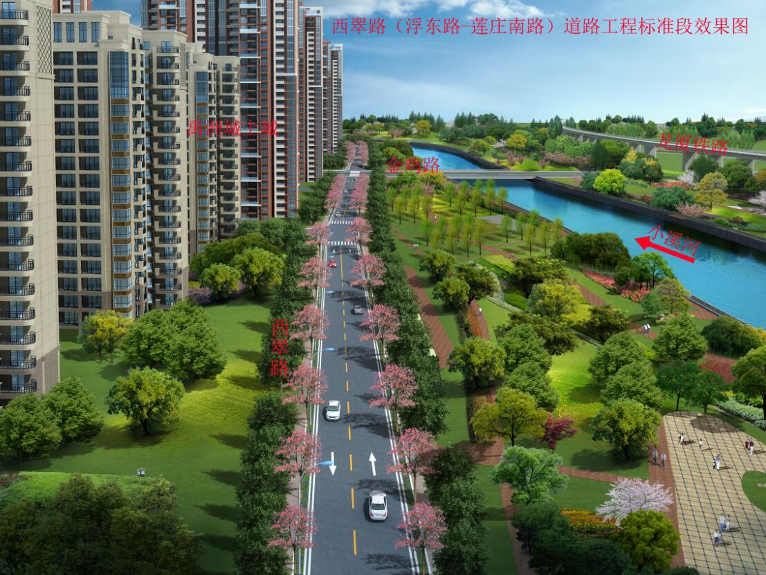 西翠路项目起于浮东路,终于莲庄南路,全长2129米,宽15米,项目总出资1亿元。