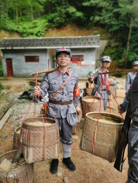 随后,学员们在中央苏区松毛岭战役遗址,开展了瞻仰红军无名烈士墓、重走红军路等现场情景教学,在郭公寨前线指挥所前,学员们听取了红军战士艰苦战斗生活的详细生动讲解,并亲自感受送粮送弹、绑担架、护送伤员等,用实际行动致敬革命先烈。