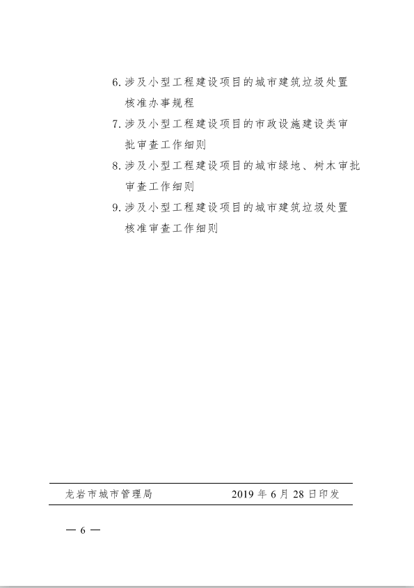 龙岩市城市管理局关于印发AYX爱体育建筑项目审批制度改革有关政策的通知(龙城[2019]91号)
