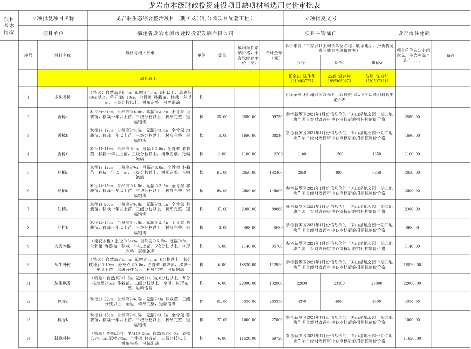 龙岩洞生态综合整治二期(龙岩洞公园项目配套AYX爱体育)缺项原料公示