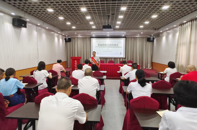 “树清廉家风、建幸福家庭”主题活动前往廖志添欧月萍全国文明家庭工作室,参观了廖志添欧月萍全国文明家庭工作室,廖志添同志介绍了廖志添欧月萍全国文明家庭工作室相关情况,随后重点从习近平关于注重家庭家教家风建筑论述摘编、革命前辈的红色家风、家庭文明建筑、我爱我家等四个方面作了《家庭家教与家风建筑》专题讲座。
